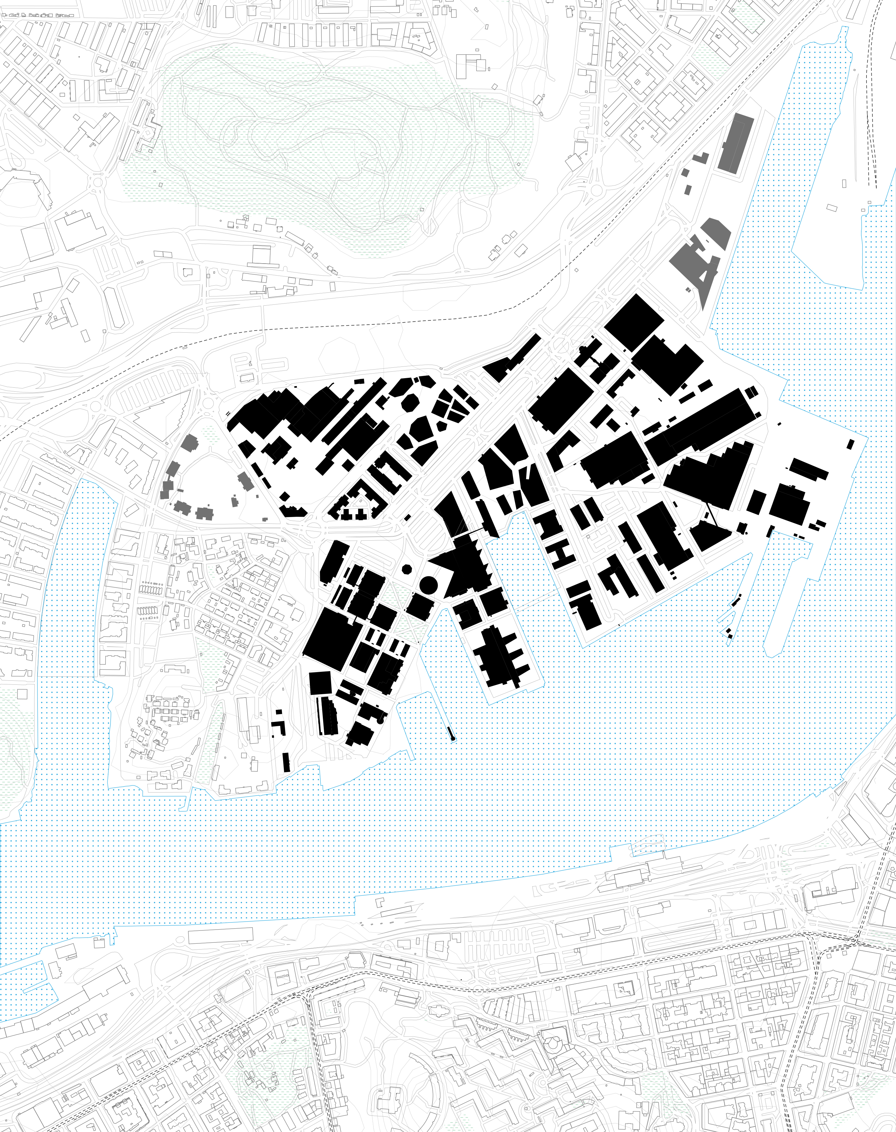 Situated north of the Göta river in Gothenburg, Sweden, Lindholmen is a waterfront district that amalgamates large corporations, educational institutions, and tech start-ups to foster an environment of interdisciplinary collaboration and knowledge production. Historically, Lindholmen evolved hand-in-hand with economic players—primarily Gothenburg’s shipbuilding industry whose use of the site for ships resulted in a fragmented palimpsest exacerbated by today’s science park— a tech hub that prioritizes vehicular access.